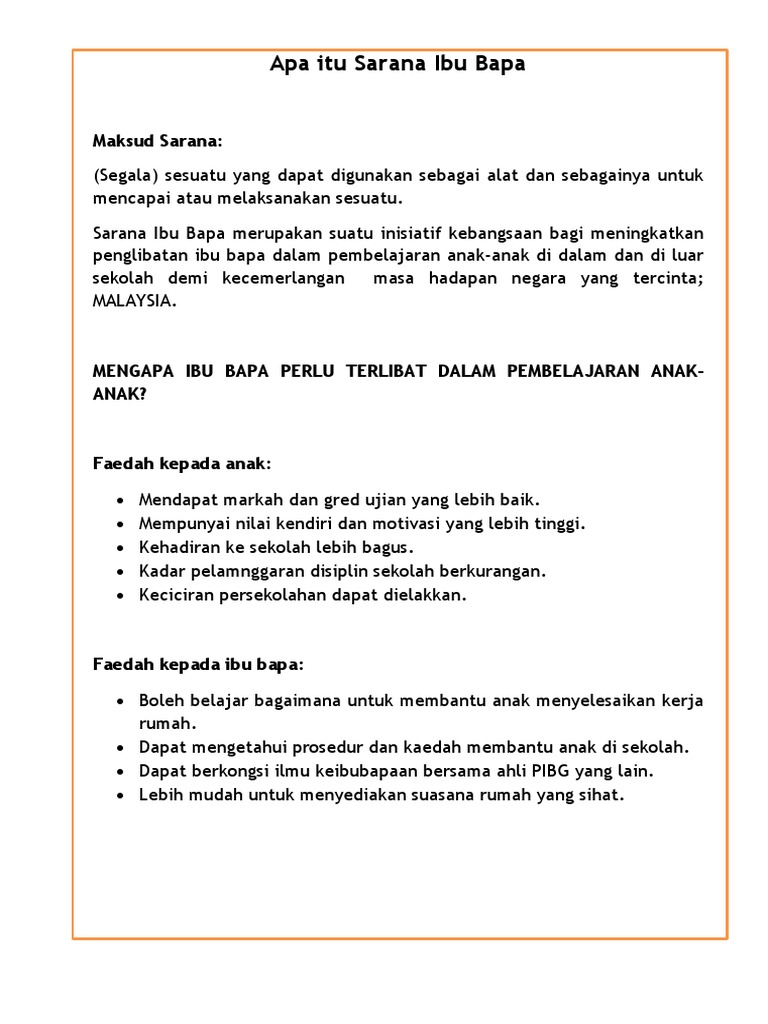 6 elemen dalam Sarana Penglibatan Ibu Bapa dan Komuniti setakat mana sekolah menyediakan keadaan yang kondusif bagi menggalakkan ibu bapa dan komuniti terlibat dalam pembelajaran. Bermula 1 Oktober 2013 semua data sarana Ibu Bapa dan Sarana Sekolah akan diuruskan secara dalam talian. Contoh teks pembawa acara pengajian ibu ibu terkait teks contoh karangan peranan ibu bapa dalam mendidik anak anak disfertaza contoh ceramah tentang ibu aneka.